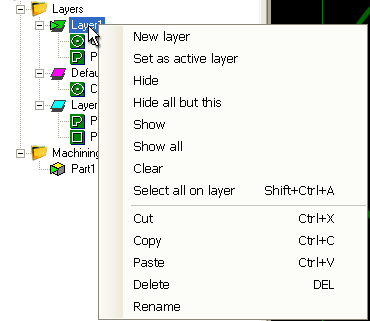Rename the selected layer. Layers can also be renamed by selecting them in the drawing tree and pressing F2, or by a slow double click on the layer name.