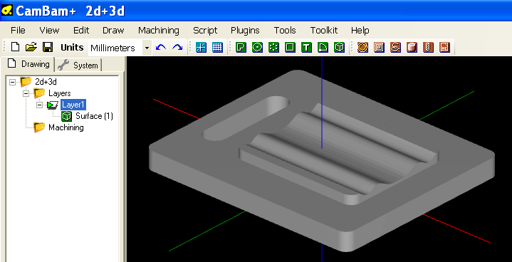 The model is then loaded into CamBam.