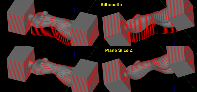 A comparison of Silhouette (top) and Plane Slice Z (bottom).