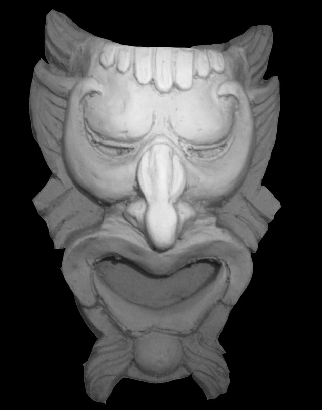 Inspired by the inimitable greybeard's experiments in the cnczone 3D for Crazies thread, I photographed an object submerged in a tray containing water and blue food colouring. I then used a drawing program to filter the bitmap to just show the red channel as a greyscale image. In theory, the further the item is from the surface of the liquid, the more blue it will appear. This worked much better than I expected although care must be taken to avoid surface reflections and air bubbles. This is perhaps not such a good idea for making heightmaps of people.
