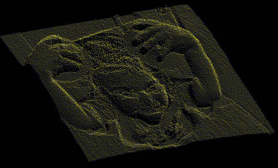 The drawing can now be exported to a DXF file. Here a heightmap pointcloud is viewed in AutoCAD.